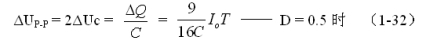 從圖1-8可以看出,在占空比D等于0.5的情況下,電容器充電的時間為 ,電容充電電流的平均值為 ,或 ;而電容器放電的時間為 ,電容放電電流的平均值為0.9 Io。