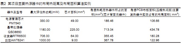 。表2計算了本項目熱源器件的布局熱距離及布局面積。