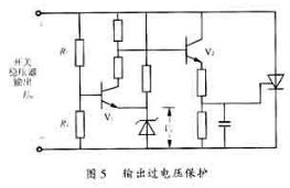 輸出過電壓保護(hù)在開關(guān)穩(wěn)壓電源中是至關(guān)重要的。特別對(duì)輸出為5V的開關(guān)穩(wěn)壓器來說,它的負(fù)載是大量的高集成度的邏輯器件。如果在工作時(shí),開關(guān)穩(wěn)壓器的開關(guān)三極管突然損壞,輸出電位就可能立即升高到輸入未穩(wěn)壓直流電源的電壓值,瞬時(shí)造成很大的損失。常用的方法是晶閘管短路保護(hù)。最簡(jiǎn)單的過電壓保護(hù)電路如圖4所示。當(dāng)輸出電壓過高時(shí),穩(wěn)壓管被擊穿,觸發(fā)晶閘管導(dǎo)通,把輸出端短路,造成過電流,通過保險(xiǎn)絲或電路保護(hù)器將輸入切斷,保護(hù)了負(fù)載。這種電路的響應(yīng)時(shí)間相當(dāng)于晶閘管的開通時(shí)間,約為5~10μs。它的缺點(diǎn)是動(dòng)作電壓是固定的,溫度系數(shù)大,動(dòng)作點(diǎn)不穩(wěn)定。另外,穩(wěn)壓管存在著參數(shù)的離散性,型號(hào)相同但過電壓起動(dòng)值卻各不相同,給調(diào)試帶來了困難。圖5是改進(jìn)后的電路。其中R1、R2是取樣電路,Vz是基準(zhǔn)電壓。