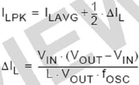 其中:ΔIL是電感電流的紋波峰峰值,單位是A;L是電感值,單位是H;FOSC是開關(guān)頻率。