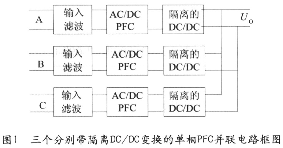1)由三個(gè)分別帶隔離DC/DC變換的單相PFC并聯(lián)組成的方法