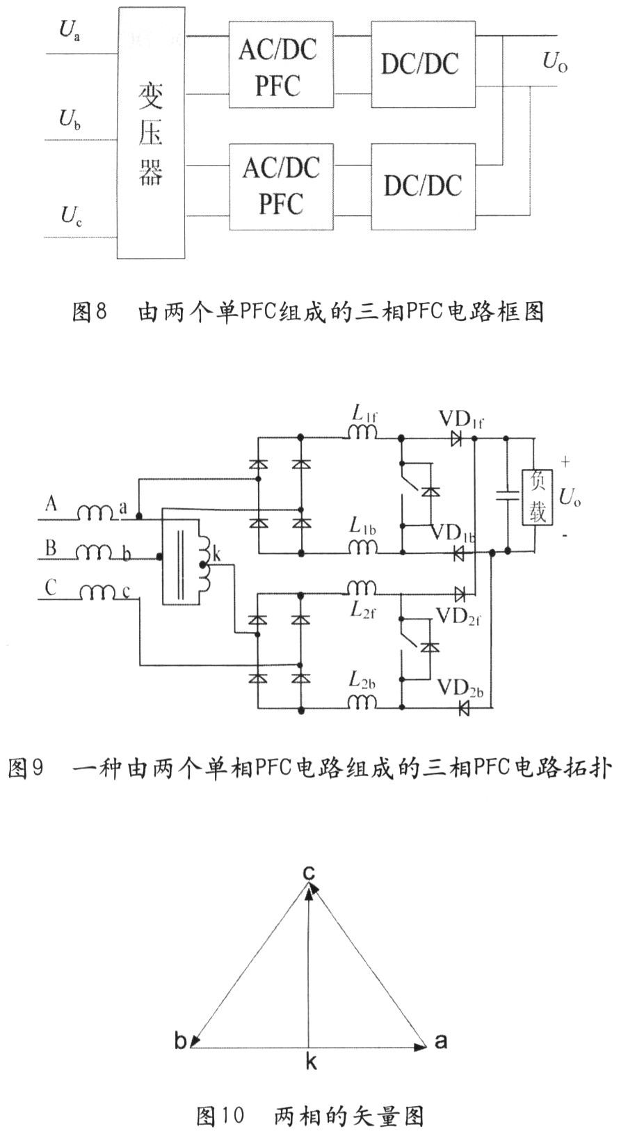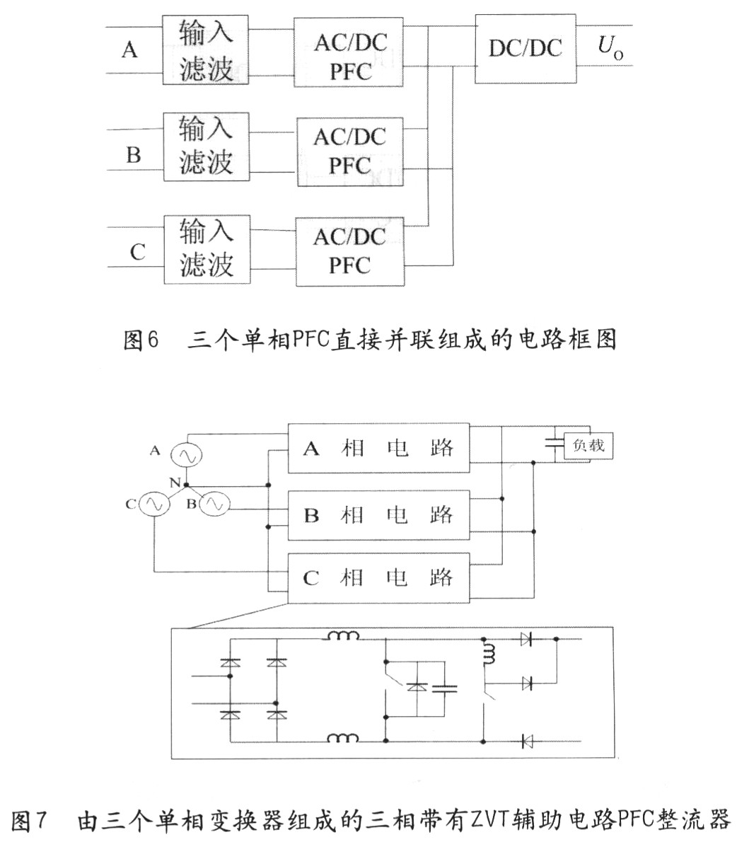 2)由三個(gè)單相PFC在輸出端直接并聯(lián)組成的方法