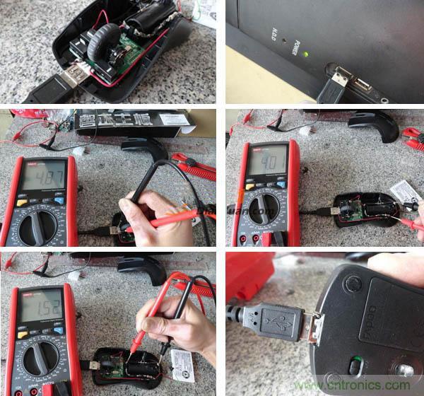 在萬(wàn)用表測(cè)試后,我們能夠看到接入后USB電壓為4.87V,鋰電池兩端為4.01V。負(fù)載端為1.52V,再次打開(kāi)鼠標(biāo)電源開(kāi)關(guān)。出現(xiàn)1.54V,竟然還高了,這個(gè)應(yīng)該關(guān)系到阻抗和容抗問(wèn)題,水平不夠,不好解釋?zhuān)凑彤?dāng)它正常了。
