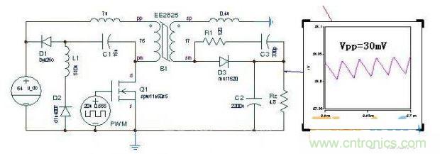 以50KHz、100W(120W)反激電源為例,當(dāng)前紋波指標(biāo)為30mV。