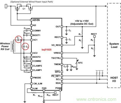 圖4.無(wú)線(xiàn)充電接收器和關(guān)鍵諧振電容器