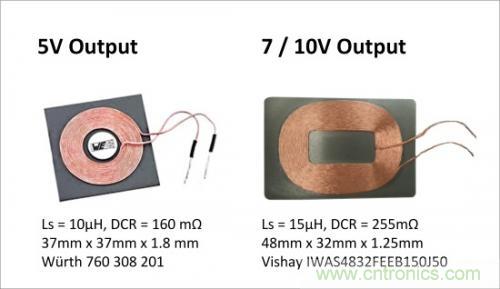 在接收器端,應(yīng)該對(duì)線(xiàn)圈參數(shù)進(jìn)行優(yōu)化,以匹配應(yīng)用的目標(biāo)輸出電壓。在需要5V輸出的情況下,RX線(xiàn)圈的標(biāo)稱(chēng)電感值應(yīng)該在10μH范圍內(nèi);對(duì)于7V或10V的較高輸出電壓,RX線(xiàn)圈應(yīng)該在15μH的范圍內(nèi)。