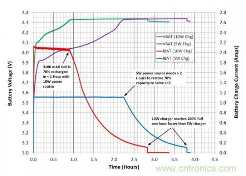 圖8.用10W無(wú)線(xiàn)電源系統(tǒng)減少電池充電時(shí)間