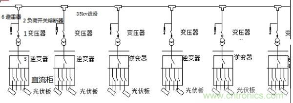 所以根據(jù)光伏發(fā)電負荷的特性,采取高壓35KV深入方陣內(nèi)部,采用小容量100KVA變壓器升壓,完全可以做到線損率最低,提高發(fā)電效率的目的。