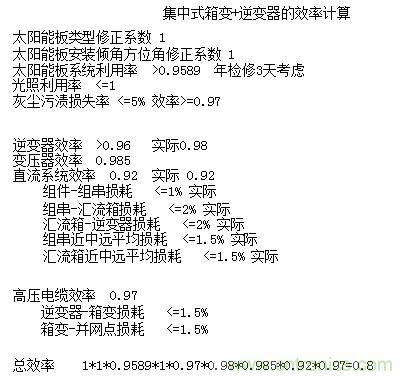 以上公式計算可參考中國質(zhì)量認證中心技術(shù)規(guī)范《并網(wǎng)光伏電站性能監(jiān)測與質(zhì)量評估技術(shù)規(guī)范》(申請備案稿)和國標規(guī)范《GB50797-2012光伏發(fā)電站設計規(guī)范》