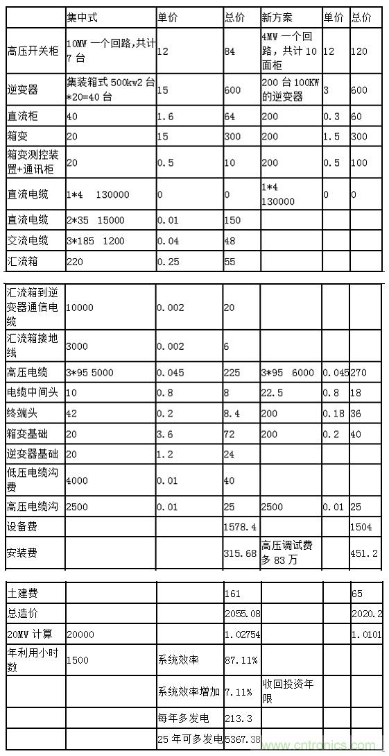 9、整體發(fā)電效率提高到87%。比普通集中式逆變器-箱變系統(tǒng)高7%。以20MW安裝容量1500年運行小時考慮,25年可多發(fā)電5400多萬度。見下圖3