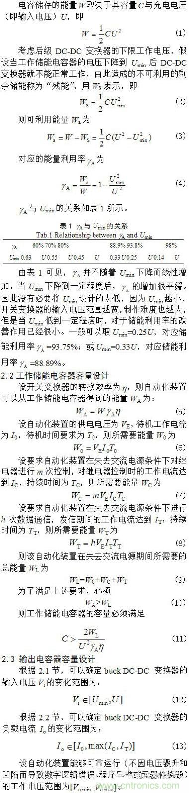 【導(dǎo)讀】為了在失電情況下繼續(xù)維持智能終端設(shè)備短暫工作,提出了一種基于電容儲能的自動化終端備用開關(guān)電源解決方案。論述了電路組成、下限工作電壓選取和儲能電容器容量設(shè)計方法。