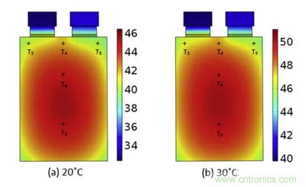 以電動(dòng)汽車(chē)上常見(jiàn)的方形電池為例,由于結(jié)構(gòu)設(shè)計(jì)的原因,在電池各個(gè)部分產(chǎn)生的熱量擴(kuò)散的速度是不一樣的,因此會(huì)在電池的平面方向和厚度方向上產(chǎn)生明顯的溫度梯度,特別是在大電流時(shí),由于電池內(nèi)部,特別是電芯中間位置產(chǎn)生的熱量無(wú)法很好的擴(kuò)散出去,因此電芯內(nèi)部的溫度會(huì)急劇的升高【1】,從而引發(fā)安全性問(wèn)題。