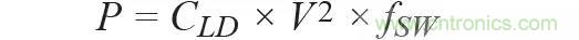 在 CMOS 技術中,提高速度(帶寬)的最普遍方法是讓晶體管幾何尺寸變小。使用更精細的 CMOS 晶體管可降低寄生效應,從而有助于提高晶體管的速度。晶體管速度越快,則帶寬越寬。數(shù)字電路的功耗與開關速度有直接關系,與電源電壓則是平方關系,如下式所示: