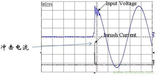 ■對于AC電源來說,將電源接到AC線上的一瞬間,AC電源本身就是一 個容性負載,假如此時電源的負載處在滿負荷狀態(tài),且AC線正處在峰 值電壓處,會產(chǎn)生最大的沖擊電流。