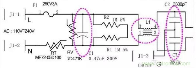 2、X電容容值選取是uF級,此時必須在X電容的兩端并聯(lián)一個安全電阻,用于防止電源線拔插時,由于該電容的充放電過程而致電源線插頭長時間帶電。 安全標(biāo)準(zhǔn)規(guī)定,當(dāng)正在工作之中的機(jī)器電源線被拔掉時,在兩秒鐘內(nèi),電源線插頭兩端帶電的電壓(或?qū)Φ仉娢?必須小于原來額定工作電壓的30%。