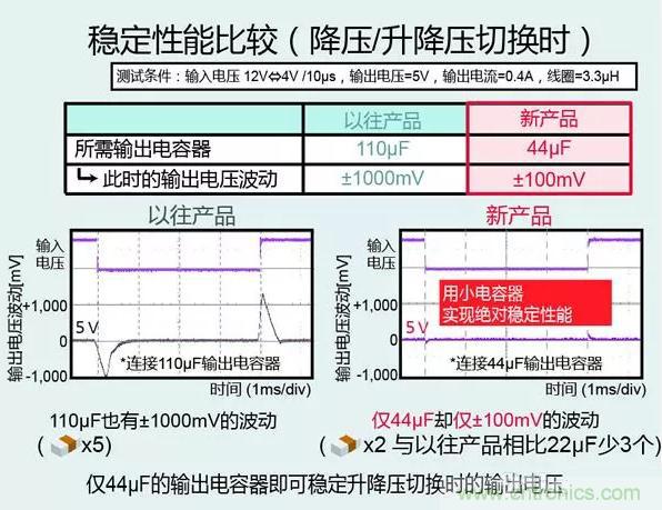 但是與降壓型轉(zhuǎn)換器相比,以往的升降壓型轉(zhuǎn)換器控制復(fù)雜且響應(yīng)性能較差,輸出需要大容量電容器。升降壓轉(zhuǎn)換器的缺點(diǎn)已是長期存在的問題。