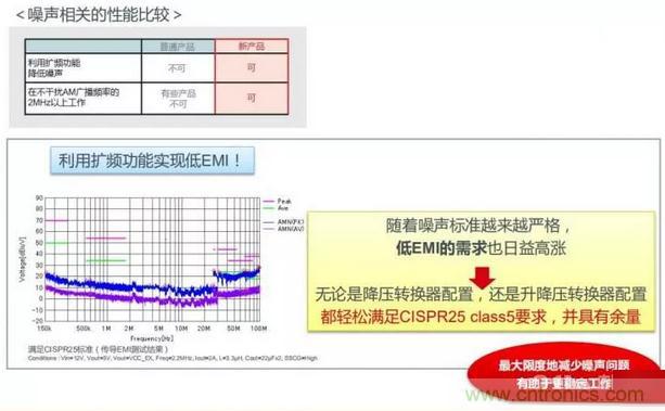 而且,同時(shí)實(shí)現(xiàn)車載ECU電源所需的“低電磁干擾性能”和“高電壓輸入、低電壓輸出,不干擾AM廣播頻段”,有助于對(duì)噪聲性能要求高的車載系統(tǒng)穩(wěn)定工作。
