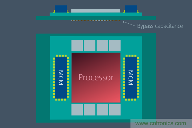 MCM 模塊能夠提供大電流,其可緊挨著處理器部署,可以在主板上,也可以在處理器基板上。這種近距離布置不僅可最大限度降低 PDN 損耗,而且還可減少電源所需的處理器基板 BGA 引腳。