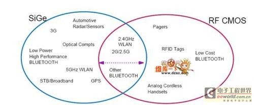 SiGe BiCMOS 工藝技術(shù)幾乎與硅半導(dǎo)體超大規(guī)模集成電路(VLSI)行業(yè)中的所有新工藝技術(shù)兼容,包括絕緣體硅(SOI)技術(shù)和溝道隔離技術(shù)。隨著擊穿電壓和高性能無源部件集成技術(shù)的發(fā)展,SiGe 正逐漸滲透至傳統(tǒng)的GaAs領(lǐng)地—即手機(jī)功率放大器應(yīng)用的領(lǐng)域。