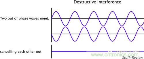 ANC技術(shù)的原理并不深?yuàn)W,高中物理就教過,就是波的干涉。如果大家對(duì)高考復(fù)習(xí)還記憶猶新的話,一定還記得如果兩列波幅度相同,相位相反,則它們干涉的結(jié)果是互相抵消,看不到波了!