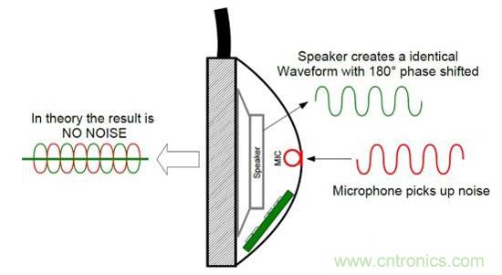 麥克風(fēng)采樣外部噪聲,改采樣到的噪聲經(jīng)過有源噪聲抵消電路處理后,產(chǎn)生一個(gè)和采樣到的噪聲相位相反,且幅度合適的“反”噪聲,并送入耳機(jī)的揚(yáng)聲器,于是噪聲在人的耳朵前就被抵消了,帶耳機(jī)的人只能聽到音樂,而聽不到噪聲。