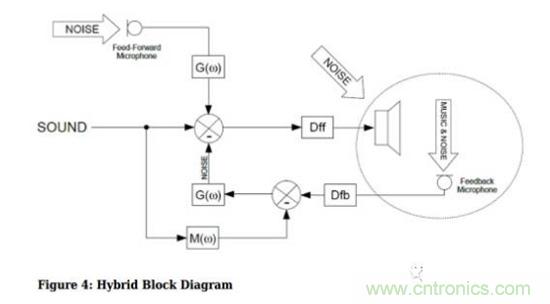 既然兩種方案各有利弊,那么把它們結(jié)合起來如何?這就是混合模式的有源噪聲消除,既使用前饋又使用反饋,系統(tǒng)設(shè)計(jì)得當(dāng)?shù)脑捒梢該P(yáng)長避短,即避免風(fēng)噪又能抵消高頻噪聲。