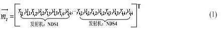 汽車?yán)走_(dá)網(wǎng)絡(luò)測(cè)量目標(biāo)的距離和速度是通過對(duì)每個(gè)傳感器測(cè)得的目標(biāo)信息進(jìn)行數(shù)據(jù)融合而得到的。在一個(gè)測(cè)量周期中,每個(gè)NDS輪流擔(dān)當(dāng)一次發(fā)射機(jī)。因此有16種距離和相對(duì)速度的組合,用向量表示為:
