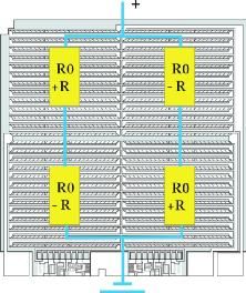 現(xiàn)代傳感器系統(tǒng)主要由兩個(gè)元件組成 —基本傳感器和信號(hào)處理專(zhuān)用集成電路 (ASIC)(圖 1)?,F(xiàn)已證明,后來(lái)由 Lord Klevin 于 1857 年發(fā)現(xiàn)的各向異性磁阻效應(yīng)特別適用于檢測(cè)磁場(chǎng)。首先考慮通常具有多種磁疇結(jié)構(gòu)的鐵磁性材料。這些稱(chēng)之為韋斯磁疇的結(jié)構(gòu),其內(nèi)部磁化的方向彼此不同。如果將這種材料平鋪為一薄層,那么磁化矢量處于材料層平面方向。另外,可較精確地假設(shè)只存在一個(gè)磁疇。當(dāng)這種元件暴露于外部磁場(chǎng)中時(shí),后者會(huì)改變內(nèi)部磁化矢量的方向。如果同時(shí)一股電流通過(guò)該元件,就會(huì)產(chǎn)生電阻(圖 2),這取決于電流和磁化之間的角度。當(dāng)電流和磁化方向彼此成直角時(shí),電阻最小,當(dāng)二者平行時(shí),電阻最大。電阻變化的大小取決于材料。鐵磁性材料的性質(zhì)也決定對(duì)溫度的依賴(lài)性。電阻最大變化為 2.2% 并且對(duì)溫度變化反應(yīng)良好的最佳合金是 81% 的鎳和 19% 的鐵組成的合金。恩智浦所有傳感器系統(tǒng)中的基本傳感器都采用這種強(qiáng)磁鐵鎳合金。在惠斯登電橋電路中單獨(dú)配置幾個(gè) AMR 電阻,以增強(qiáng)輸出信號(hào)并改善溫度反應(yīng)特性。此電路也可在制造過(guò)程中進(jìn)行微調(diào)。圖 3 顯示如何在裸片上配置 AMR 元件。