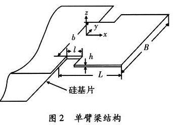 Aasys是一個(gè)可在微機(jī)上使用的綜合性有限元軟件,是微機(jī)電系統(tǒng)設(shè)計(jì)中廣泛使用的有限元分析軟件。通過有限元的分析計(jì)算可以預(yù)測(cè)懸臂梁上引力分布、固有頻率、可測(cè)最大加速度等,進(jìn)而指導(dǎo)梁結(jié)構(gòu)參數(shù)的選取。經(jīng)過對(duì)梁結(jié)構(gòu)有限元的計(jì)算分析選取單臂梁、雙臂梁結(jié)構(gòu)參數(shù),如表1所示。