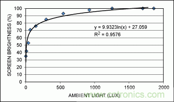 圖7. 將環(huán)境光強映射為最佳顯示屏亮度的曲線示例