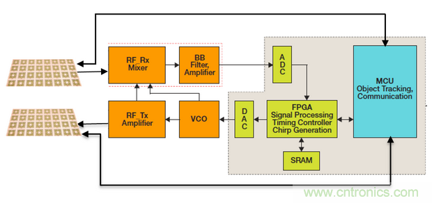 Metawave的模擬雷達(dá)技術(shù)是基于電子可控天線。它使用一根帶有兩個(gè)端口的天線:一個(gè)端口連接到Tx或Rx鏈路,另一個(gè)連接到MCU。MCU通過查找表來定義和控制天線波束寬度和方向,從而使Metawave的模擬雷達(dá)能夠?qū)崿F(xiàn)微秒級(jí)速度的掃描。(來源:Metawave)
